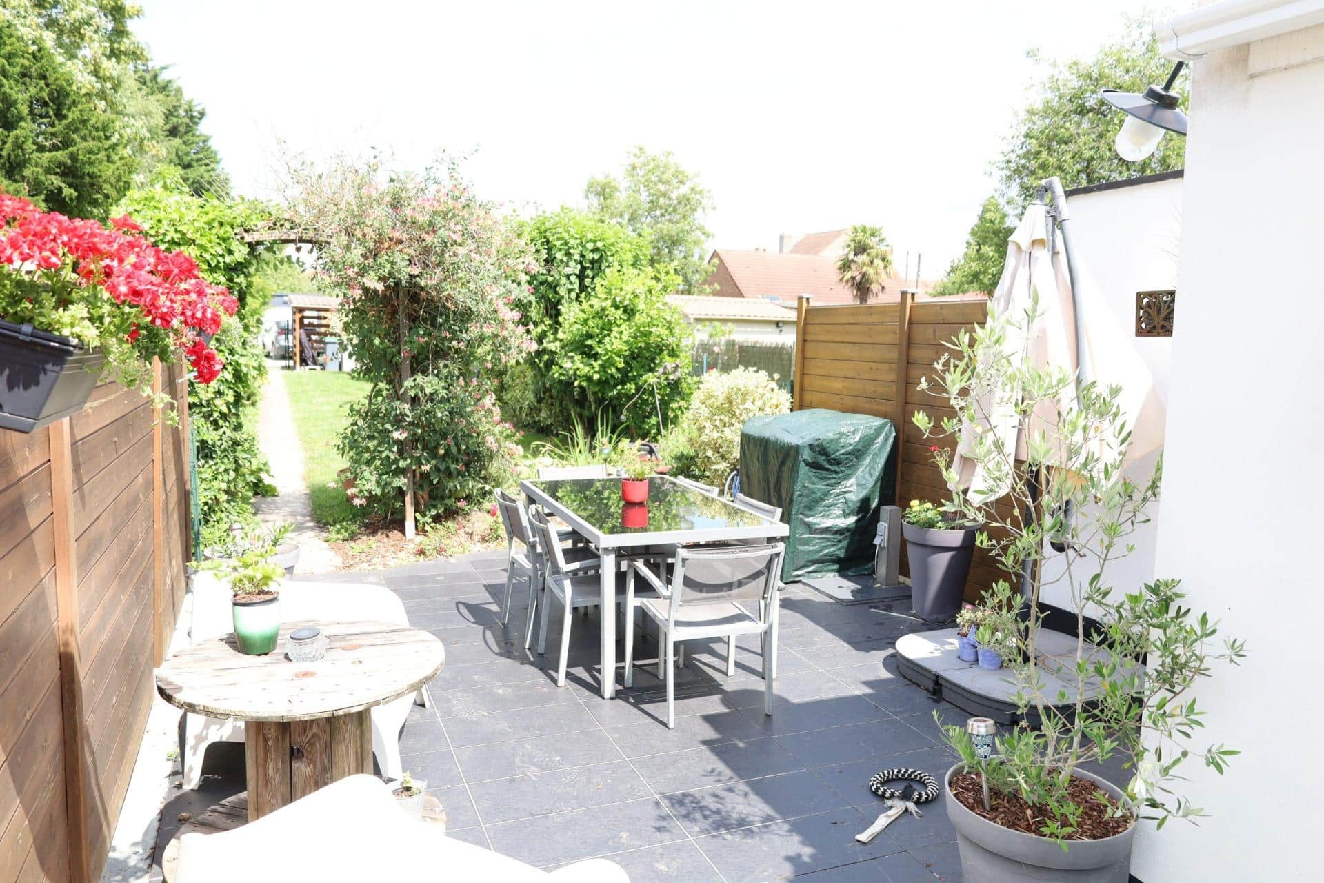 Un accès direct par une baie vitrée sur un grand jardin ou vous pourrez profiter de plusieurs activités extérieur grâce à son grand terrain comme le jardinage, deux abris de jardins.